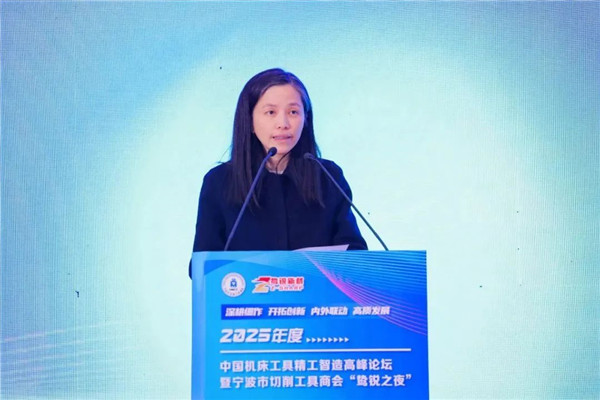 寧波市工商業(yè)聯(lián)合會黨組成員、副主席樂敏為本次論壇致辭,她表示:本次論壇機(jī)床工具行業(yè)優(yōu)秀企業(yè)家們和知名專家們溝通交流、共同探討未來行業(yè)發(fā)展的平臺,是一次行業(yè)盛會,對于進(jìn)一步把握切削工具產(chǎn)業(yè)發(fā)展的新理念和新趨勢有積極和深遠(yuǎn)的意義。寧波作為東南沿海的重要制造基地,制造業(yè)實(shí)力強(qiáng)勁,目前已成為全國首個國家級制造業(yè)單項(xiàng)冠軍突破百家的城市。有良好的切削工具產(chǎn)業(yè)發(fā)展基礎(chǔ),已形成配套完善的產(chǎn)業(yè)鏈,期待和大家一起,共同推動寧波切削工具產(chǎn)業(yè)的高質(zhì)量發(fā)展。