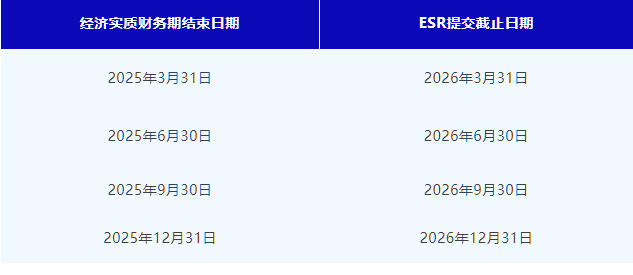 2. 經(jīng)濟(jì)實(shí)質(zhì)報(bào)告(ESR)- 財(cái)務(wù)期結(jié)束后12個(gè)月內(nèi)